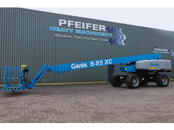 Genie S-85XC (Extra Capacity) 4x4 Self-Propelled Boom Lift. Manufacturer: Genie Typ: S-85XC Building year: 2020 Fuel: Diesel Serial number: S85XCD-184 Working hours: 1.776 h Working height: 27.91 m Horizontal reach: 22.71 m Maximum lift capacity: - unrestricted: 300 kg - restricted: 454 kg Drive speed - 4WD stowed: 4.8 km/h Gearbox typ: Hydrostatic Drive / Steering: 4x4/2 Tyre condition: 80% Engine manufacture / typ: Deutz TCD2.2 L3 * Capacity in KW: 55 * Capacity in HP: 74 * Jib CE (Declaration of Conformity). Transport Size L=10.25 H= 2.80 More detailed pictures / product movie on our website. pfeifermachinery.com Above specifications are subject to change without prior notice and subject to errors