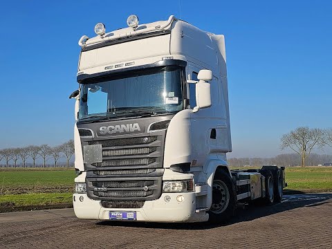 Number of axles: 3, Configuration: 6x4, Own weight: 14005 kg, Gross vehicle weight: 28000 kg, Total fuel capacity: 500 litre, Trailer coupling, Kingpin size: Special, Chassis-height: 95 cm, Diff. locks: 2, Suspension type: full air suspension, Cabin type: Topline, Cruise control, Tacho, Digital tachograph, Airconditioning, Parking heater, Color: white, Engine capacity: 537 Kw (720 Hp), Euro: 6, Gearbox kind: Opti-cruise, Number of Gears: 12, Add. break system, Retarder make: Scania, Power steering, ABS, ASR