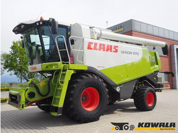 Kowala Agrotechnika company offers Claas Lexion 570 + V750: - year of manufacture – 2004, - engine – CAT C12 – 397 HP, with compressor - engine hours – 2962 hr, - threshing drum hours – 2040 hr, - CEBIS – on-board information system, - CLAAS 4-TRAC System – Steering drive axle, - travel speed – 20 km/h, - APS HYBRID – threshing system, - AUTO CONTOUR – ground contour following, - QUANTIMETER – yield measurement, - GRAINMETER – electronic returns quality display, - AUTO PILOT – steering axle guidance system, - dust extraction, - 3D cleaning system, - SPEZIAL CUT straw chopper with radial spreader, - chaff spreader, - trailer coupling, automatic, - fuel tank – 800 l, - grain tank – 10 500 l, - XL unloading auger, - AC-MATIC - automatic climate control with heating - camera (1x), - printer, - XENON work lights, - radio MP3/USB/AUX/SD/Bluetooth, - rear view mirrors, electrically adjustable, - front tyres – Goodyear 900/60 R32, - rear tyres – Trelleborg 600/55 – 26.5, - 7,5 m header V750 with Claas transport trolley, - right hydraulic rapeseed side knive, - LASER PILOT – left and right, - good condition If you have any questions, please don't hesitate to contact us. We offer also worldwide shipping. Part exchange possible.